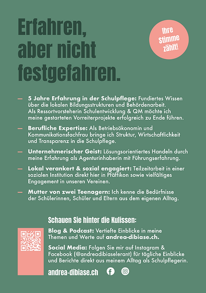 Ich stelle mich erneut als Mitglied der Schulpflege Pfäffikon zur Wahl. Meine Entscheidung, vorerst nicht für das Präsidium zu kandidieren, ist eine bewusste strategische Fokussierung.